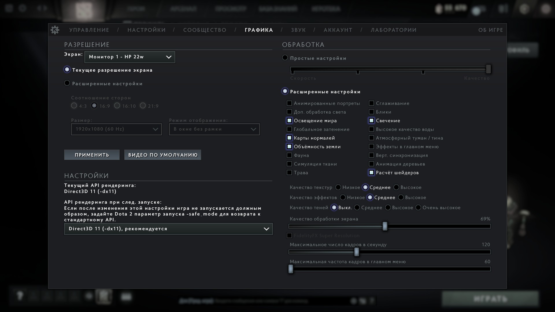 Самый простой и быстрый способ улучшить производительность Dota 2 — это настроить графику. Снизив качество графики, можно значительно увеличить FPS и уменьшть лаги. Смотрим, какие параметры можно уменьшить без потери игрового процесса.