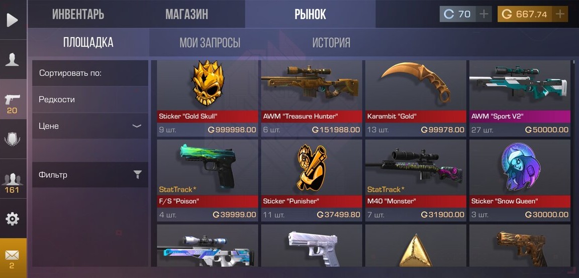 - Не стоит брать скины для малопопулярных оружий (например, M40, FN FAL и т.д.). Их будет сложно продать.