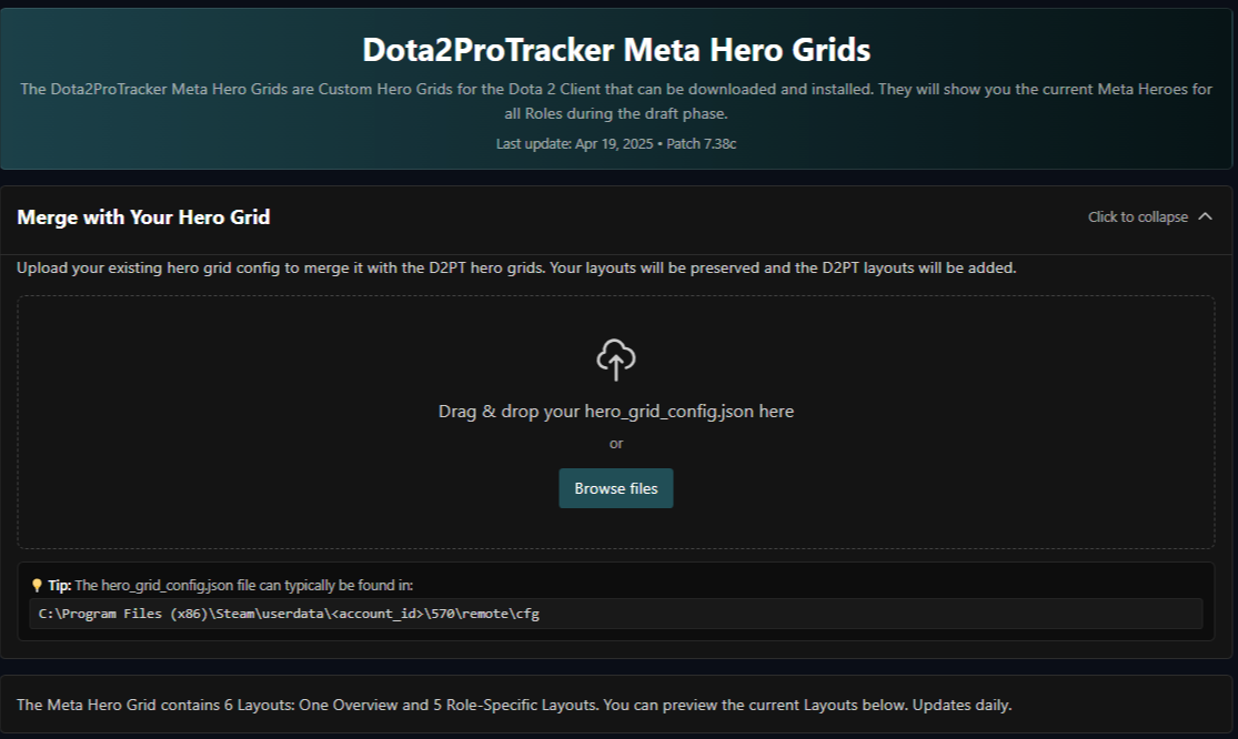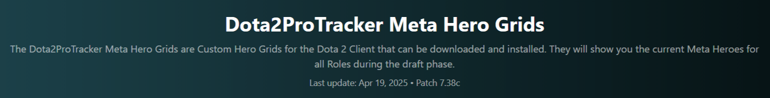 Meta Hero Grids от Dota2ProTracker — это простой и мощный инструмент, который помогает быть в курсе свежей меты, быстрее ориентироваться в драфте и уверенно выбирать героев в Dota 2.