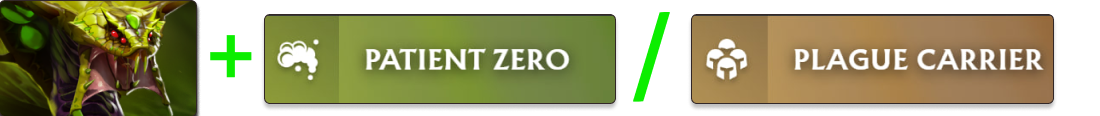 Выбор между аспектами зависит от драфта и предпочтений игрока. Plague Carrier отлично работает против героев, которым сложно выходить с линии, а Patient Zero может быть силён против хилящихся керри и в затяжных драках.