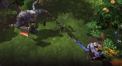 Разберёмся сразу со всеми мобилками. Тут пуджа зовут Гром, а внешний вид у него скучноватый. Вроде бы похож ни на кого и на всех сразу. Но мне, почему-то больше всего напомнил именно то самое классическое Поганище из вселенной Warcraft.