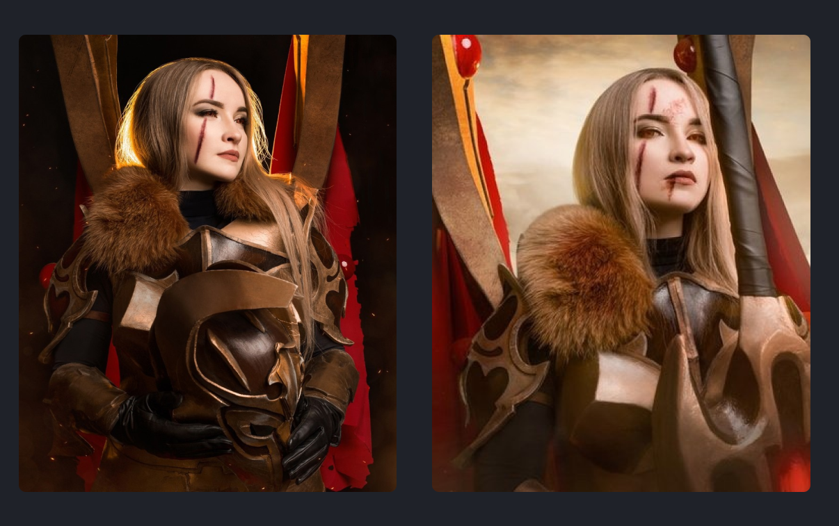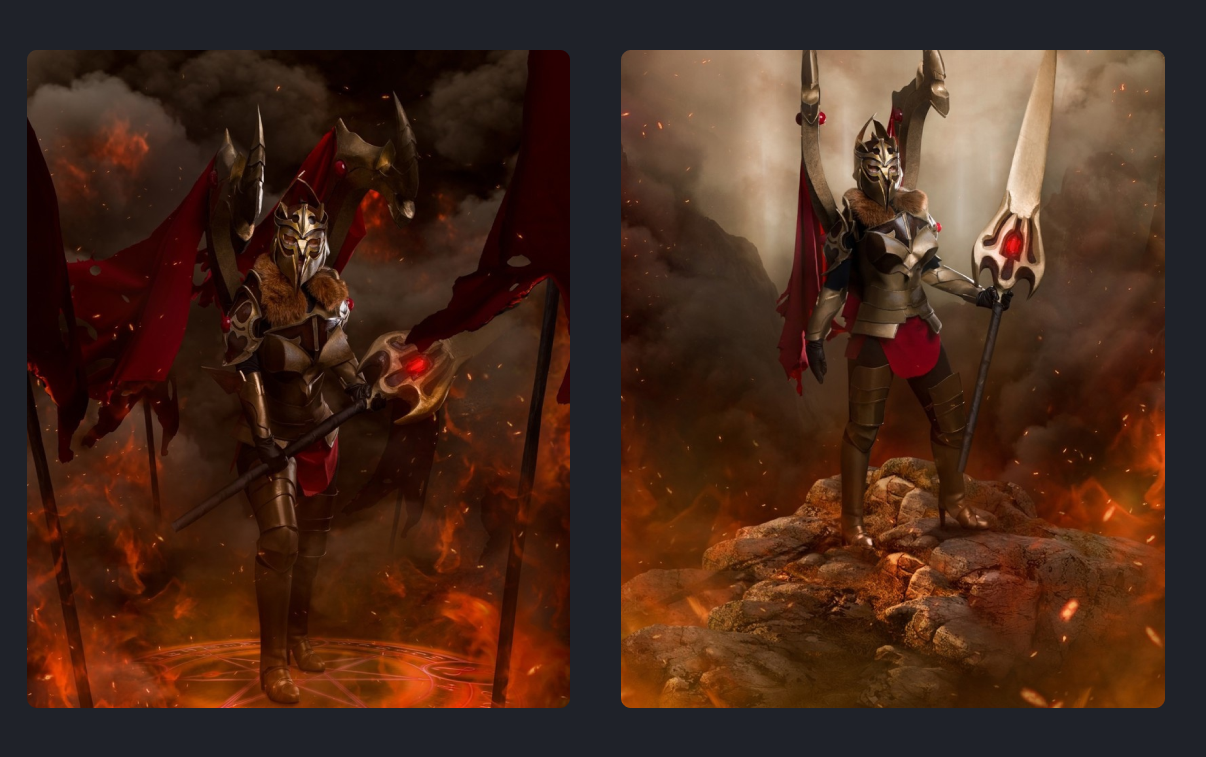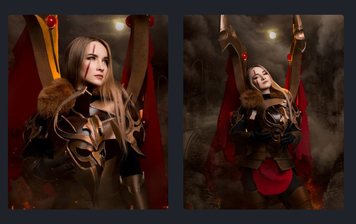 В отличие от многих других косплеев, Аэлита скрупулезно проработала каждый элемент образа из Daemonfell Flame, сделав костюм еще более узнаваемым для поклонников игры. Качество крафта впечатляет: добротная броня с огненными акцентами, длинный плащ и характерный шлем создают эффект полного погружения в атмосферу вселенной Dota 2. Благодаря фотографиям Екатерины Сынковой, передающим мощь и величие Legion Commander, образ приобретает эпичный и почти кинематографический вид.
