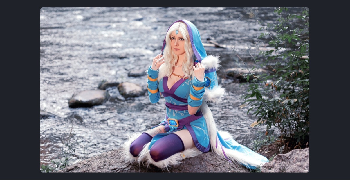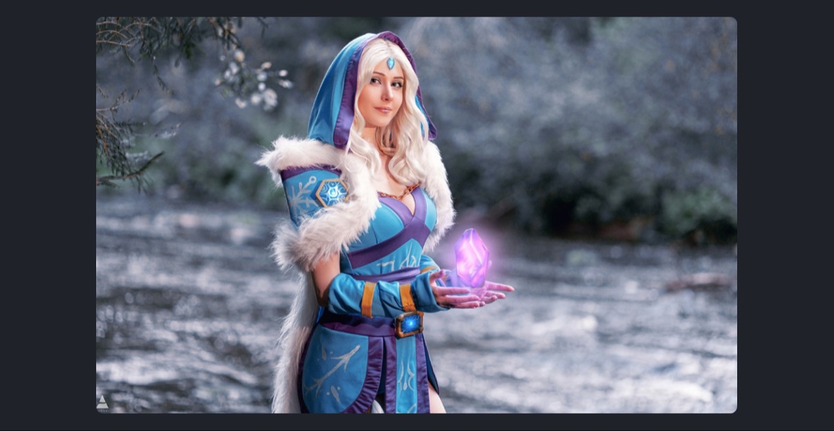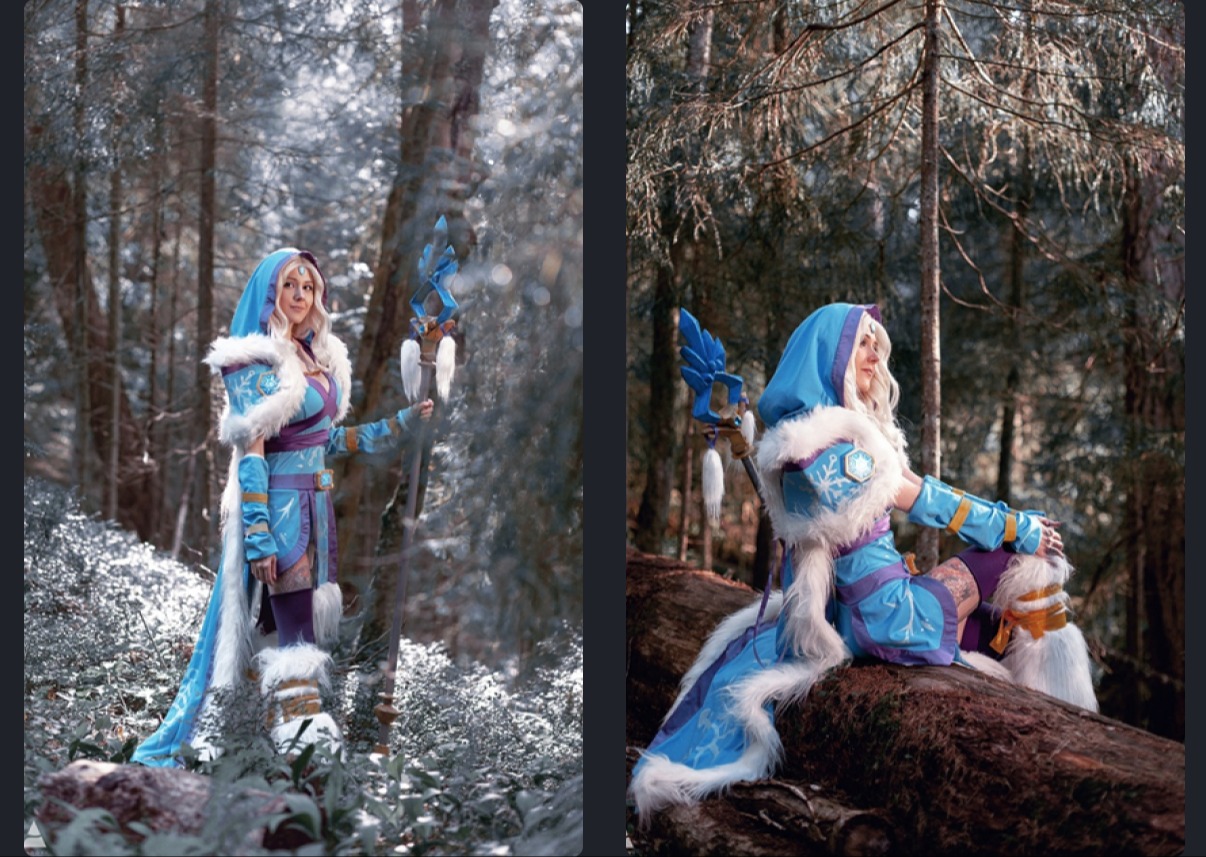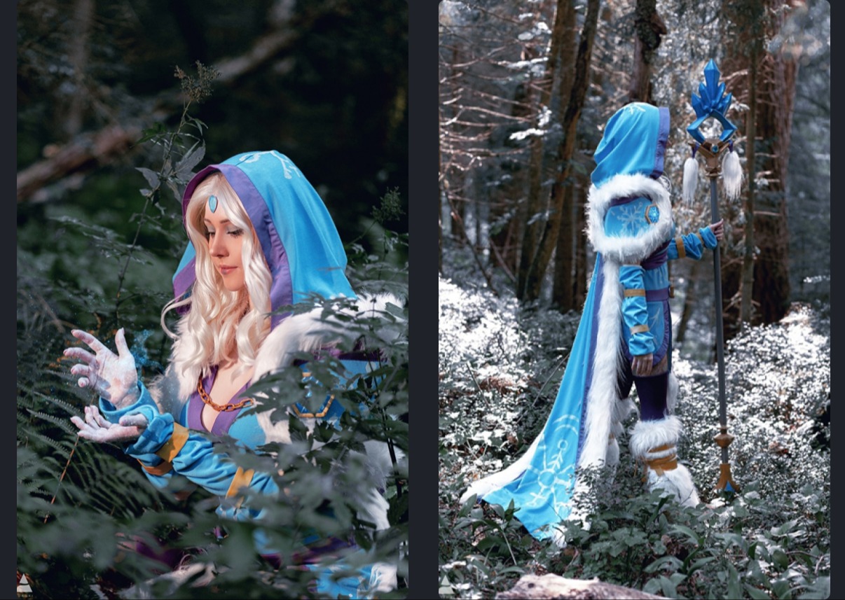 Потрясающий косплей на Crystal Maiden из Dota 2 в исполнении Morphia великолепно воплощает дух ледяной волшебницы. В наряде идеально переданы детали: ярко-голубое платье с узорами снежинок, меховая отделка, напоминающая зимние морозы, и роскошный посох, украшенный кристаллами.