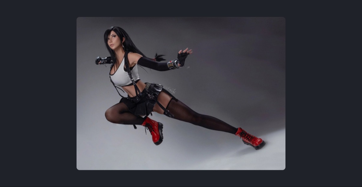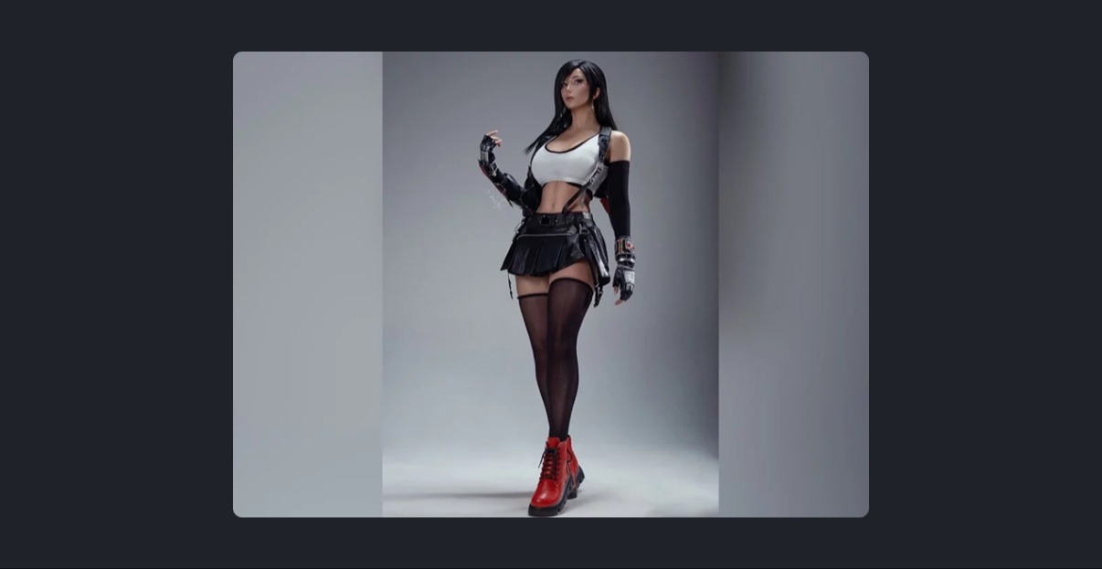 Косплей впечатляет своим мастерством и точностью. В каждом кадре прослеживается внимание к деталям оригинального образа Тифы.