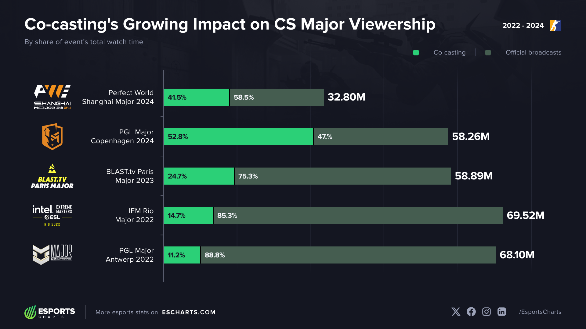 Показательным стал мейджор в Копенгагене. Впервые в истории CS2 ко-касты набрали больше зрителей, чем официальный стрим. Особенно ярким оказался пример с бразильцем Gaules. Даже после того как ему запретили стримить без задержки, его аудитория продолжила расти.