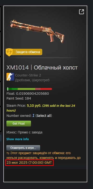 Сегодня, 23 июля, должны были выйти из трейд-протекта первые скины из капсул CS2. Об этом прямо говорится на табличке предметов — окончание ограничений ожидалось в 10:00 по московскому времени. Однако прошло уже более четырёх часов, а скины до сих пор нельзя ни обменять, ни продать.