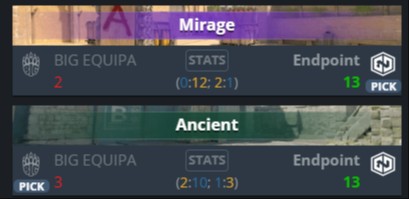 Женский состав BIG EQUIPA дебютировал на турнире CCT против команды Endpoint. К сожалению, матч оказался крайне сложным для девушек: они смогли взять лишь 5 раундов за две карты. На первой карте первая половина завершилась разгромным счётом 12:0 в пользу Endpoint.