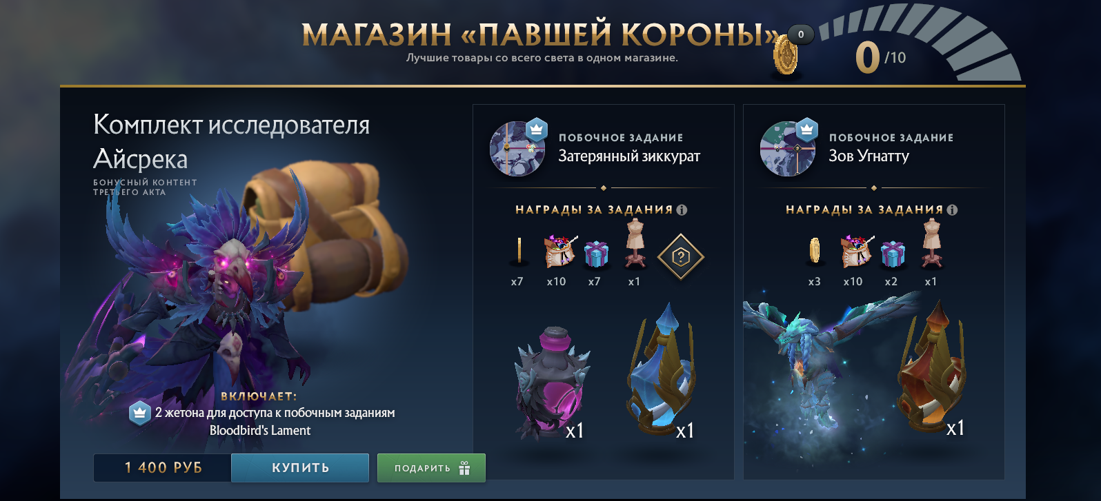 При прохождении третьего акта игроки смогут получить эксклюзивный набор на Void Spirit с двумя стилями (стили открываются за комплект исследователя), а также Immortal-предмет на Winter Wyvern, который меняет вторую способность.