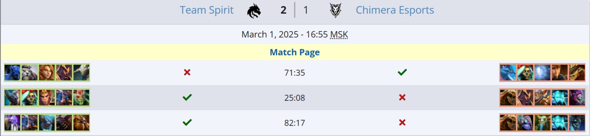 - Во второй Chimera Esports и Team Spirit — за финал нижней сетки.