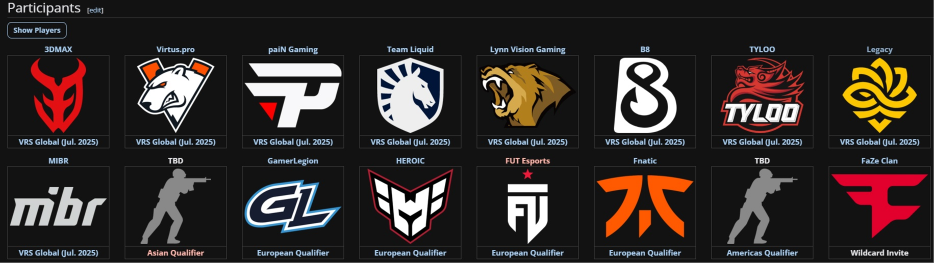 Полный список участников CS Asia Championships 2025: