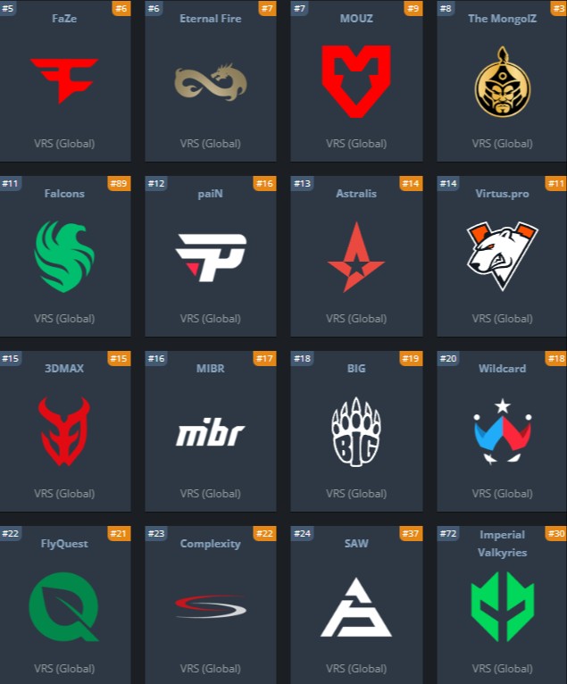 Также произошли изменение с рейтингом Valve. Во-первых, он стал более прозрачным. На странице турнира, после его окончания можно увидеть распределение очков. Во-вторых, теперь в карточке каждого коллектива на вкладке с ивентом отображается его VRS рейтинг.