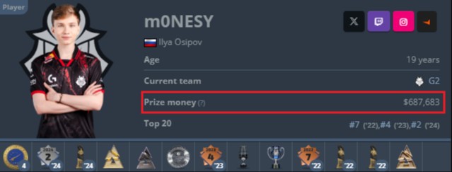 На портале HLTV.org вышло обновление. Теперь в профиле игроков отображается заработанная сумма с призовых за всю карьеру. Стоит отметить, что сумма призовых неточная. Портал делит общий заработок команды с ивента на всех участников состава, но не учитывает долю организации.