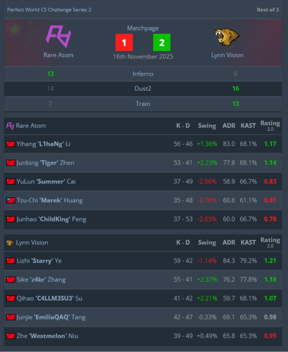 Команда Lynn Vision стала чемпионом Perfect World CS Challenge Series 2, уверенно обыграв Rare Atom в гранд-финале. На решающей серии блистали Е Личжи Starry и Чжан Сыке z4kr, которые и вывели коллектив к титулу.