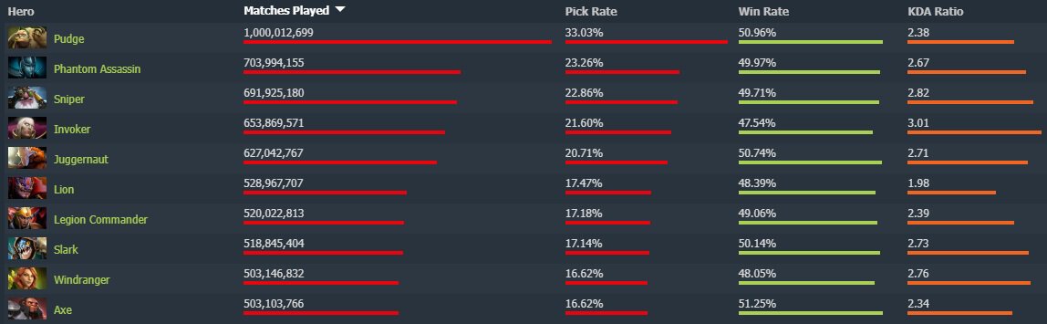 На самом популярном герое в Dota 2 официально сыграно свыше миллиарда матчей. Это первый персонаж, достигший такой отметки!