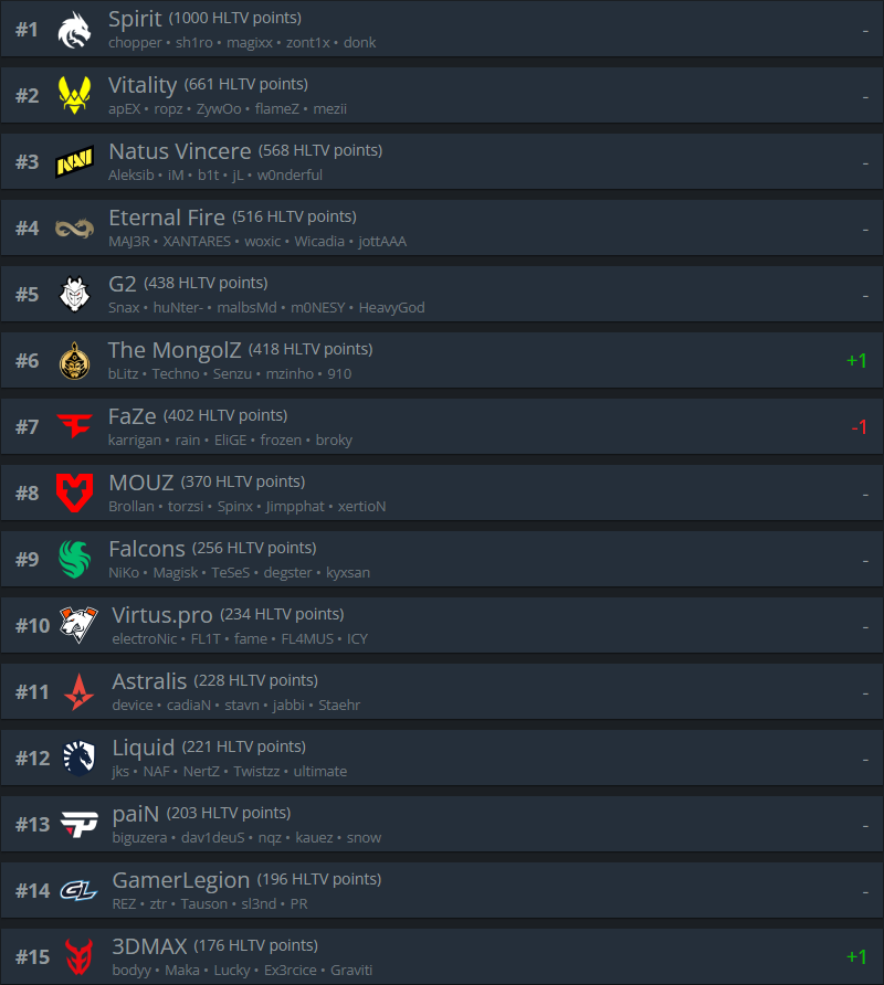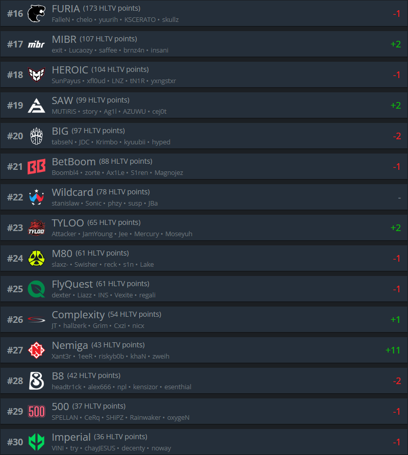 HLTV не стали ждать завершения игрового дня EPL S21 и обновили рейтинг. Особо выделились Nemiga — разом апнули +11 позиций и залетели в топ. Теперь тег находится на рекордном 27-м месте, ранее его представителям удавалось добираться максимум до 29-го.