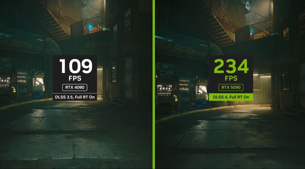 Также DLSS 4 была переписана практически с нуля, что сделало ее в три раза эффективнее предыдущих версий. NVIDIA заявляет, что благодаря улучшениям базовая частота кадров в видеоиграх может увеличиваться до восьми раз.