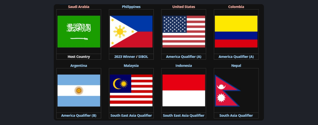 В соревновании участвуют только национальные сборные, в состав которых входят по большей части малоизвестные игроки из местных тир-2/3 организаций. Но есть исключения! Например, за Саудовскую Арабию выйдет полный состав Twisted Minds, а Египет представлен тремя игроками Team Falcons — Alpho, KENJI и Koba.