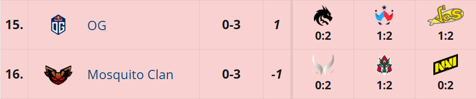OG и Mosquito Clan проиграли по три дебютные серии на PGL Wallachia S3 и первыми покинули состязание. Команды разделили 15-16 место, заработав скромные $10 000 каждая.
