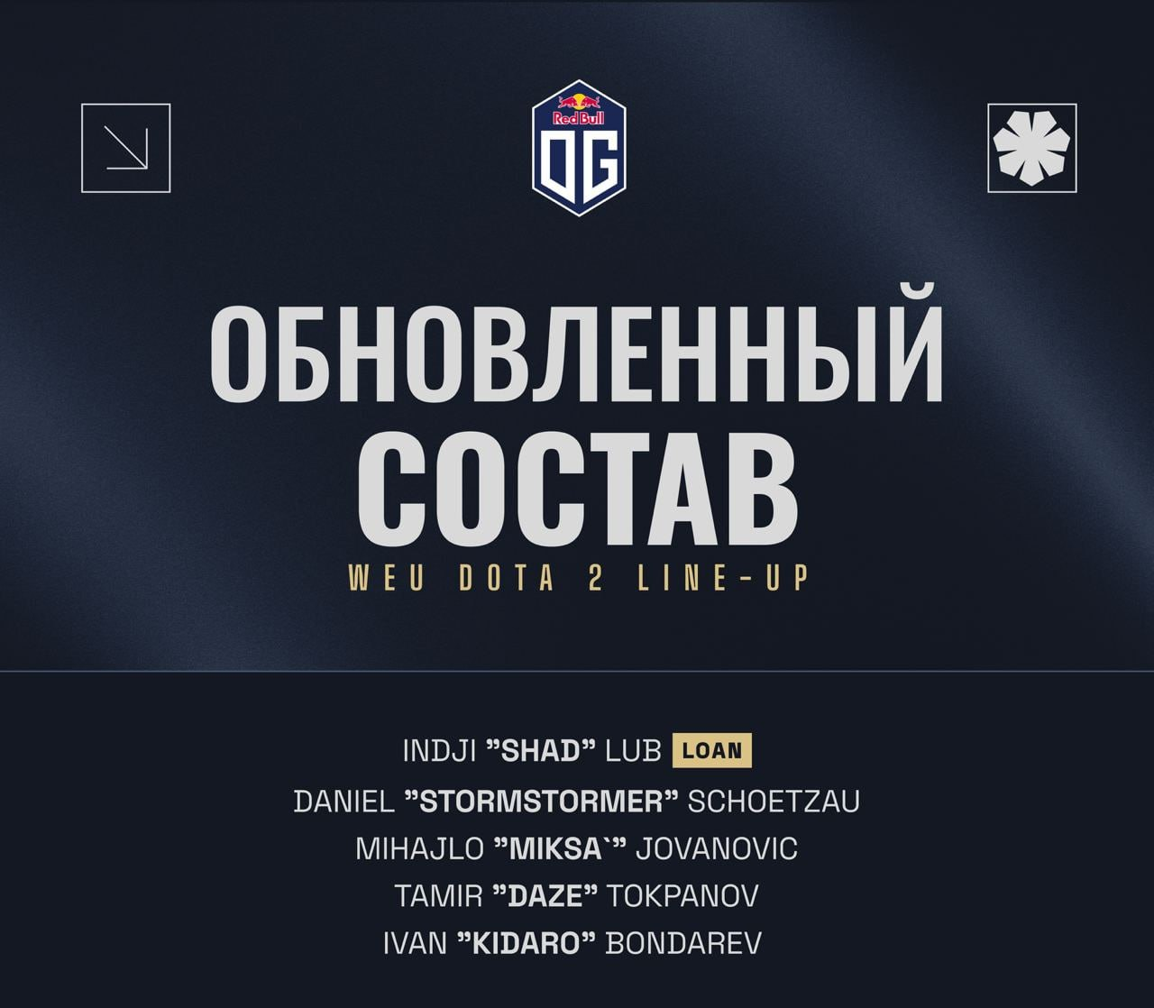 Организация OG объявила состав по Dota 2, с которым будет стремиться к выходу на The International 2025. Новым керри команды стал Инджи Shad Люб — он присоединился на правах аренды из Natus Vincere. Остальные роли заняли игроки, уже выступавшие за OG в последние месяцы.