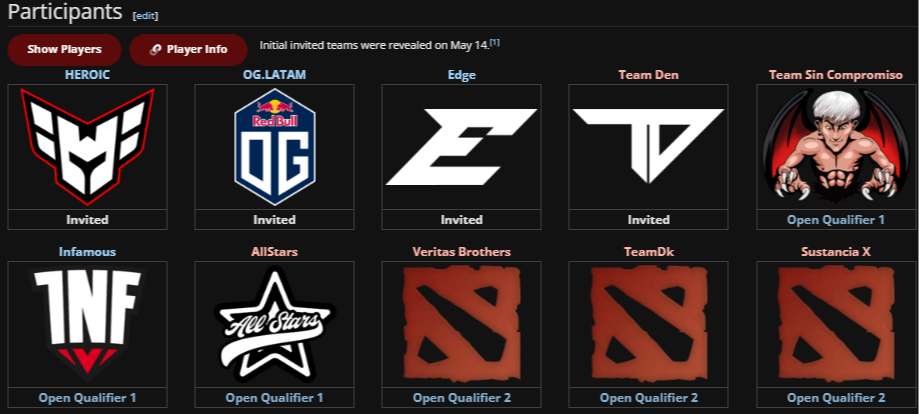 Список участников закрытой квалификации TI14 в Южной Америке: