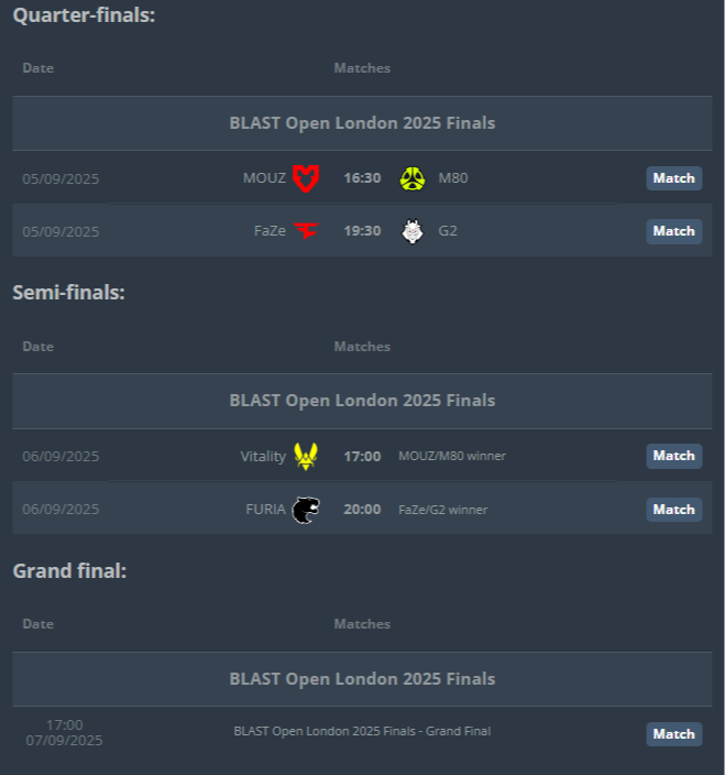 LAN-финалы BLAST Open London пройдут в OVO Wembley Arena. Матчи начнутся 5 сентября, а чемпион определится в гранд-финале best-of-5.