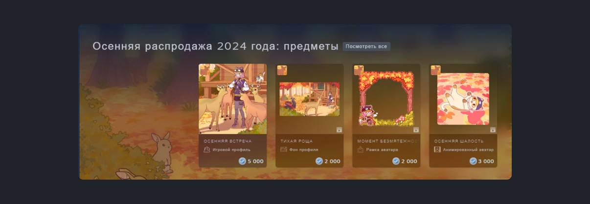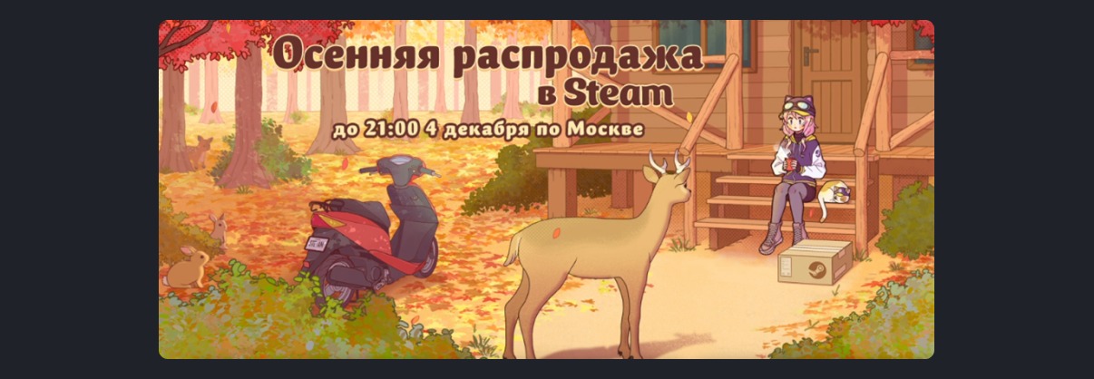 Стартовала осенняя распродажа в Steam, а это значит, что самое время покупать любимые тайтлы по низким ценам. Помимо скидок также есть возможность получить несколько тематических предметов для оформления профиля. Аттракцион невиданной щедрости продлится до 4 декабря 21:00 по МСК.