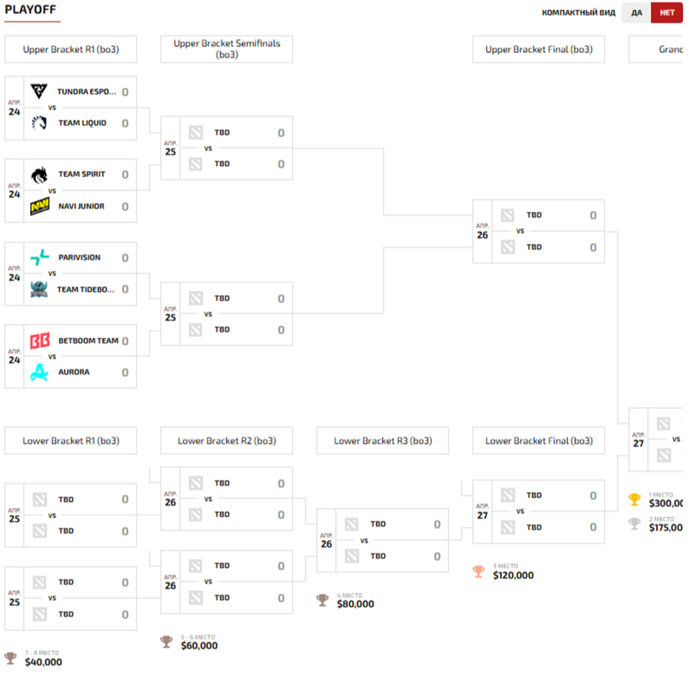 Плей-офф пройдет в формате BO3-матчей, начиная с четвертьфиналов. Вот расписание матчей на 24 апреля: