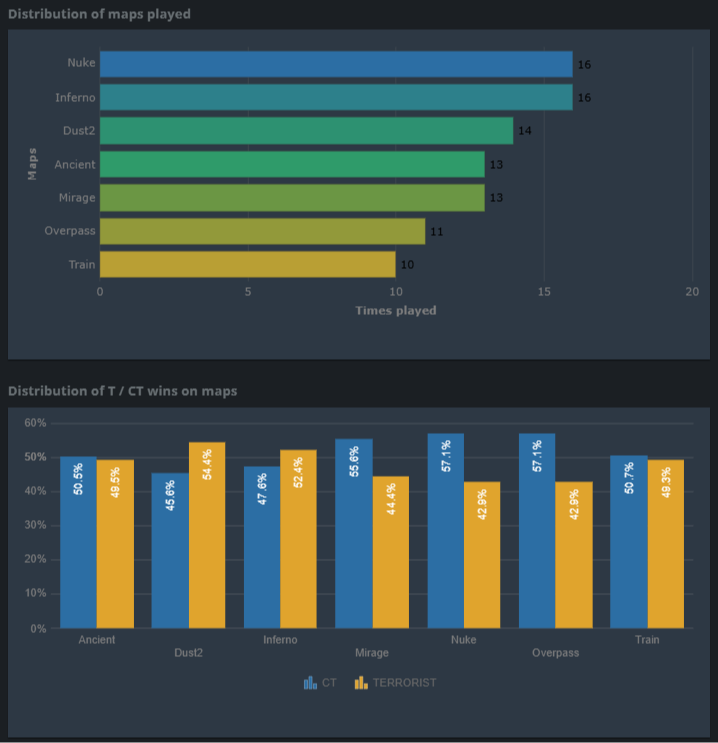 По статистике, чаще всего участники выбирали Nuke и Inferno – каждая из карт была сыграна 16 раз.