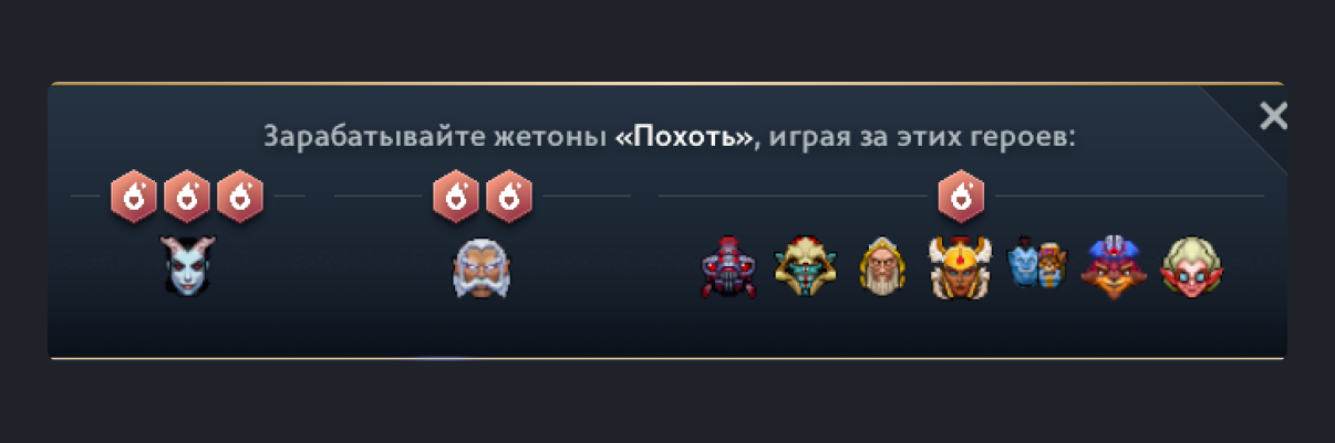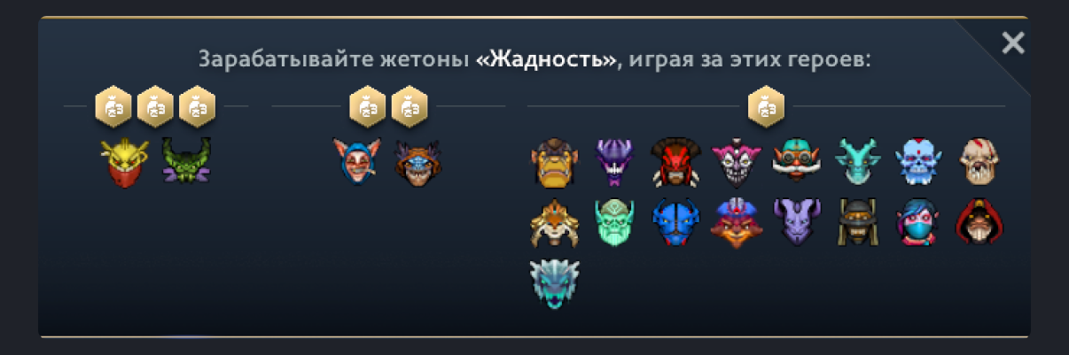 Первые семь токенов из общего числа основаны на библейских пороках: гордыне, чревоугодии, лености, жадности, зависти, гневе и похоти. И проассоциированы с героями.