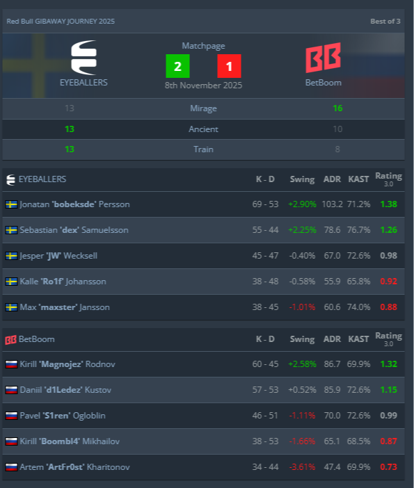 BetBoom снова остаются вторыми – уже во втором подряд гранд-финале и снова падают от тех же шведов, которые забрали у них титул на Red Bull GIBAWAY JOURNEY всего две недели назад. EYEBALLERS уносят домой $22 000.