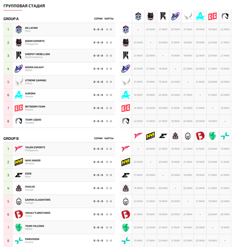 На первом этапе команды поделены на две группы по восемь участников и сыграют по круговой системе в формате best-of-2. По итогам этой стадии по четыре лучших коллектива выйдут дальше, остальные покинут турнир.