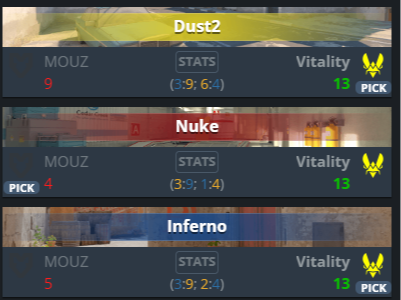 MOUZ не смогли навязать борьбу — особенно болезненным поражение стало на Nuke, где они сумели взять лишь 4 раунда. На Inferno ситуация не улучшилась, и Team Vitality уверенно закрыли гранд-финал, оформив чистую победу.
