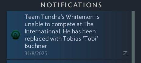 Саппорт состава Tundra Esports по Dota 2 Мэтью Whitemon Филмон пропустит The International 2025. В клиенте игры появилась информация, что игрок не сможет присоединиться к команде из-за визовых проблем.