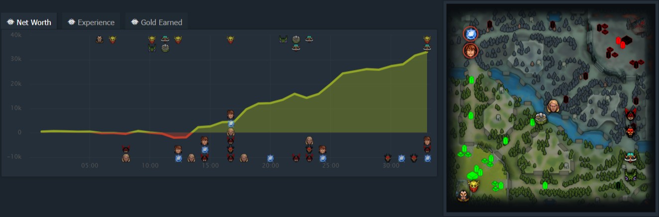 🕐 Первая карта продлилась 33 минуты и 55 секунд. Гладиаторы смогли снести только один тавер первой линии, с 13-й минуты бесповоротно уступив доминацию Тундре.