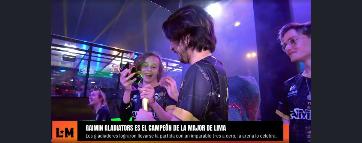 - Саппорт Gaimin Gladiators Эрик tOfu Энгель разломил напополам трофей The Lima Major 2023.
