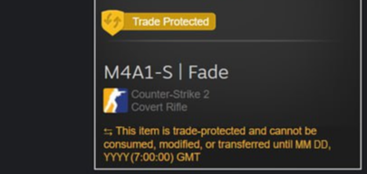 - Предметы, переданные через трейд, теперь помечаются специальным значком. Пока действует защита, их нельзя использовать (например, наклеить наклейку или открыть кейс)