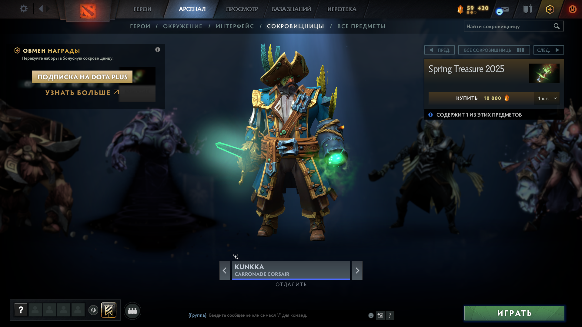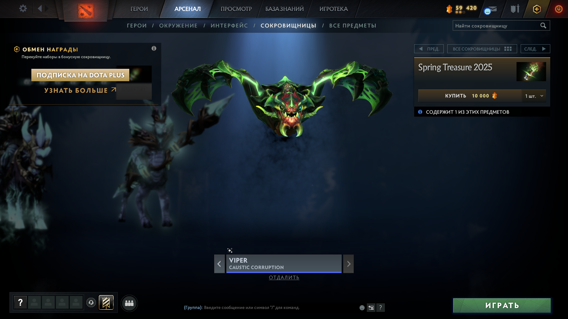 С патчем 7.38b cтартовал новый сезон Dota Plus, который принес Sprig Treasure 2025 на девять сетов. О качестве косметики судить трудно, но явно не «вау».