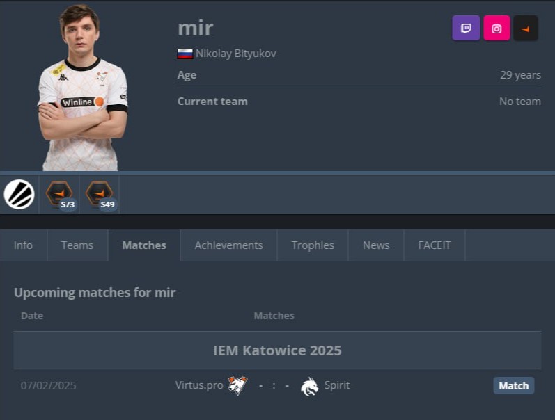 Место FL4MUS предположительно займет Николай mir Битюков. Во вкладке матчей на его HLTV-странице уже появился соответствующий матч.