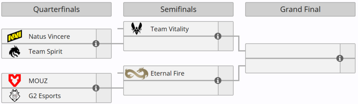 Турнир возобновится 28 марта в 18:30 по МСК — в этот день пройдут четвертьфиналы, на следующий — полуфиналы, а BO5 гранд-финал назначен на 30 марта. Все матчи, кроме заключительного, пройдут в формате BO3.