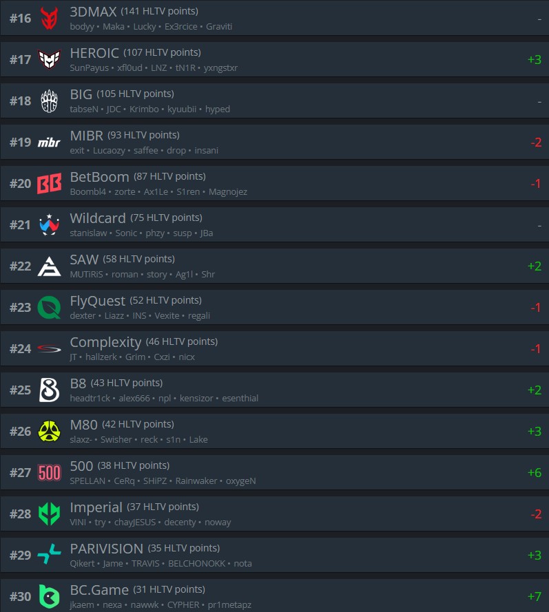 За пределами топ-30 сильно подросли немало команд, вот некоторые из них: