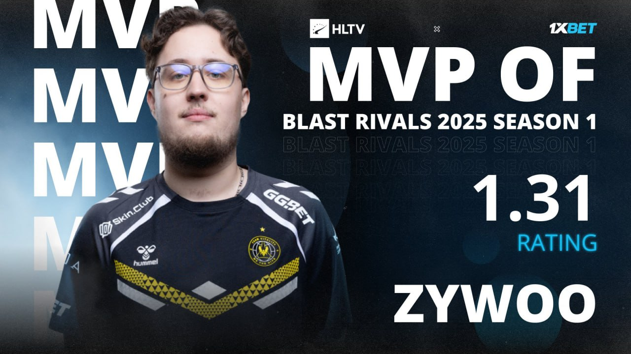 Матье ZywOo Эрбо стал лучшим игроком BLAST Rivals Spring 2025, он закончил ивент с рейтингом 1.31.